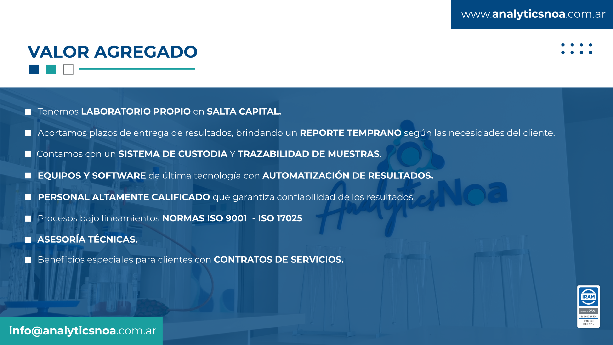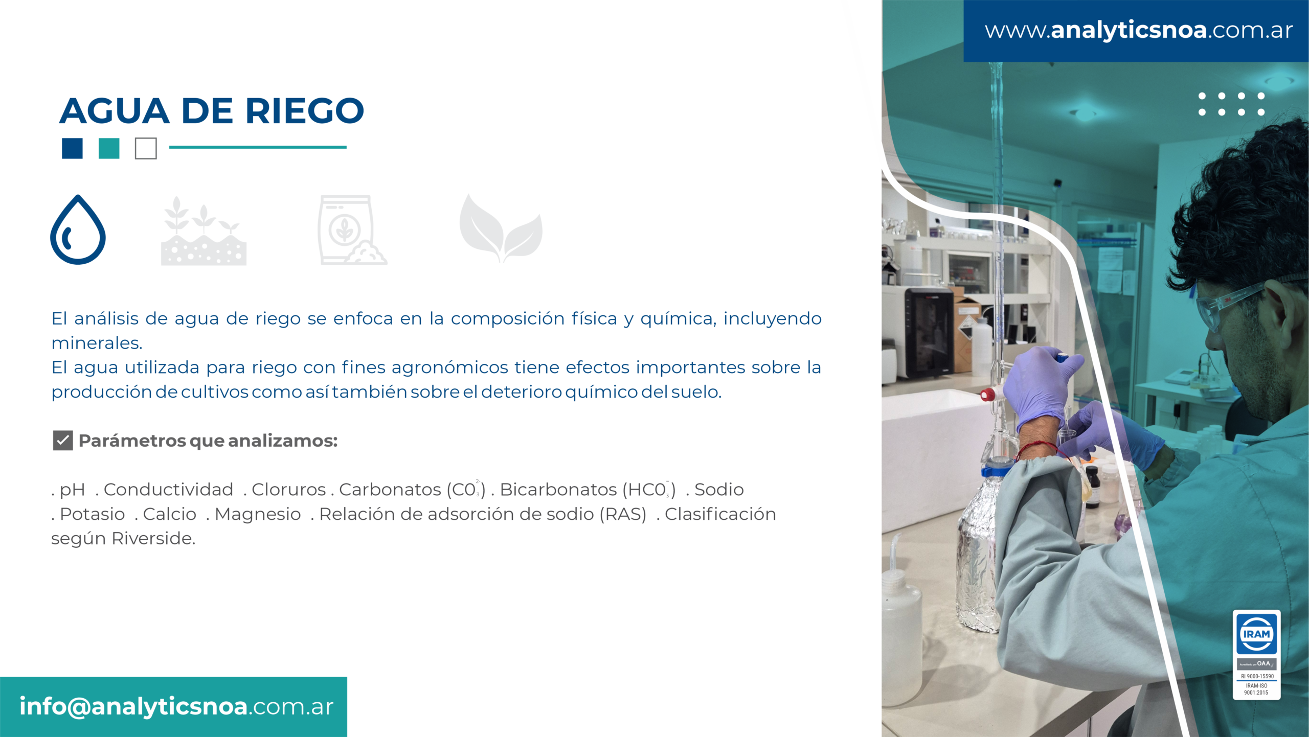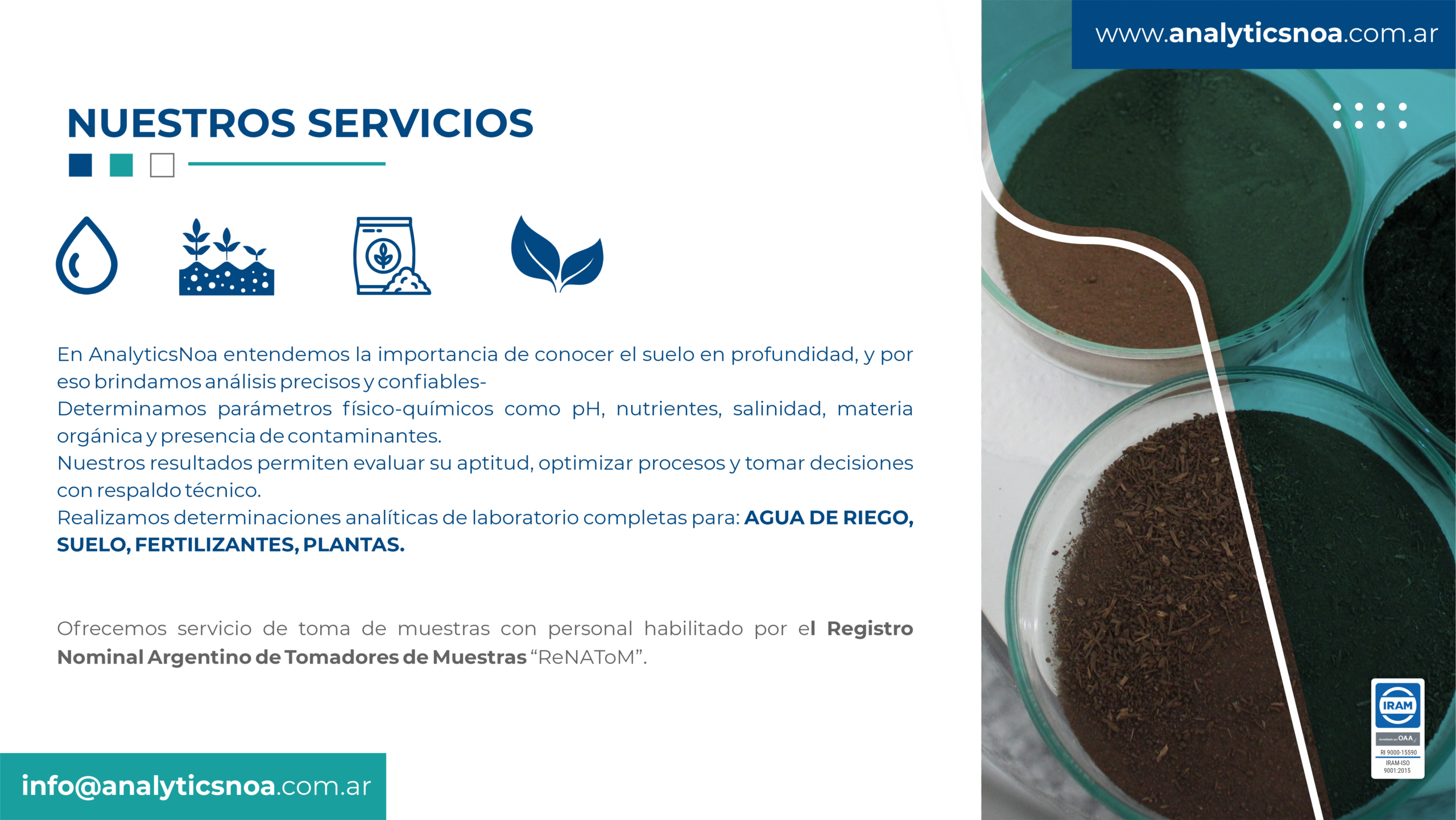 Realizamos análisis físico-químicos que permiten evaluar su calidad, detectar contaminantes y determinar su aptitud para distintos usos productivos y ambientales. Generamos información confiable para que cada decisión esté respaldada por datos precisos.